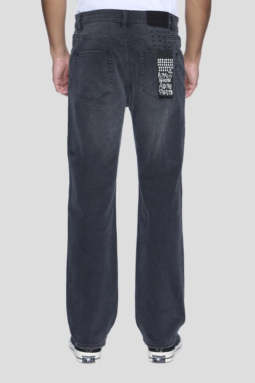 Детали: Мужские темно-серые джинсы Hazlow 3rd Degree от Ksubi (Ксуби). Пяти-карманная модель, пояс с петлями для ремня, нашивка с логотипом сзади на поясе, прямой крой, полная длина