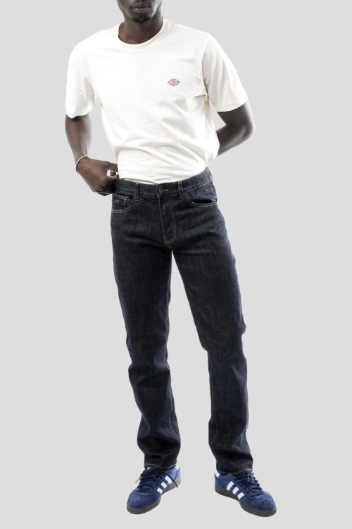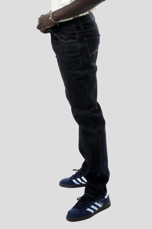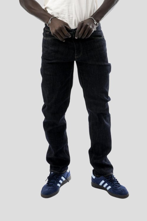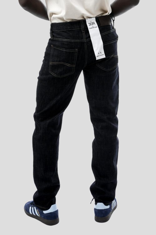 Детали: Мужские темно-синие прямые джинсы от Armani Exchange (Армани Эксчендж). Пяти-карманная модель, пояс с петлями для ремня, нашивка с логотипом сзади на поясе, прямой крой, полная длина