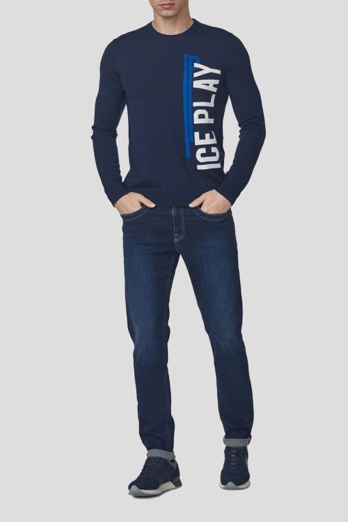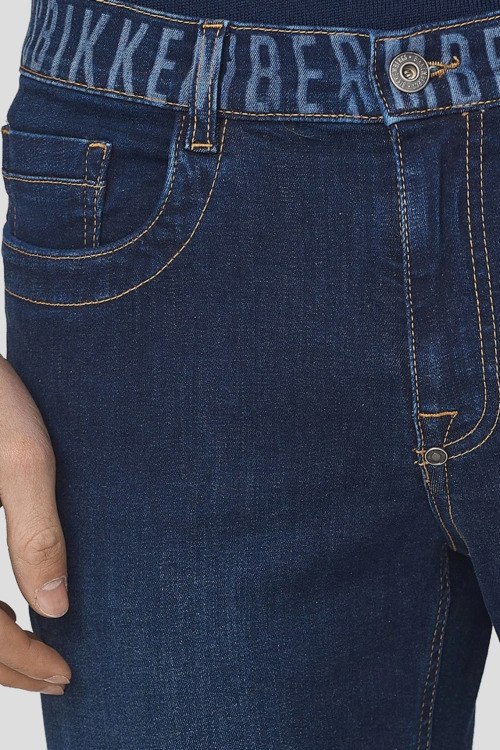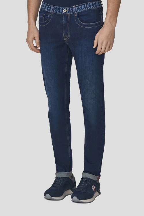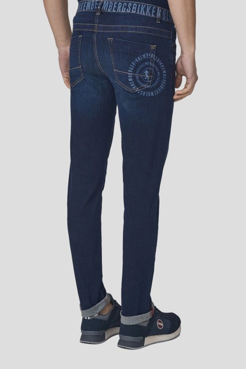 Детали: Мужские темно-синие джинсы из хлопкового микса от Bikkembergs (Биккембергс). Полная длина, брендированный пояс, застежка на молнию и пуговицу, пять карманов