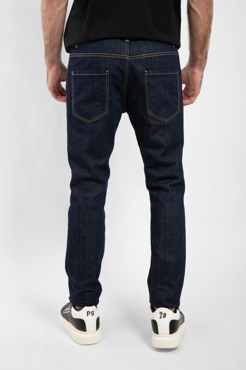 Мужские темно-синие прямые джинсы Skater от Dsquared2 (Дискваред). Пяти-карманная модель, пояс с петлями для ремня, нашивка с логотипом сзади на поясе, прямой крой, полная длина.