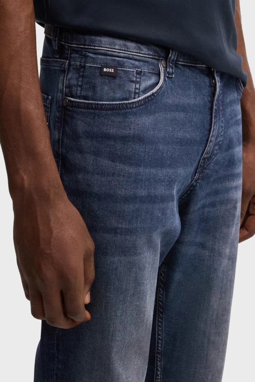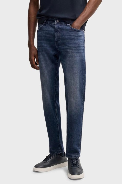 Детали: Мужские темно-синие джинсы P-Re.Maine от Hugo Boss (Хуго Босс). Пяти-карманная модель, пояс с петлями для ремня, нашивка с логотипом сзади на поясе, прямой фасон, полная длина