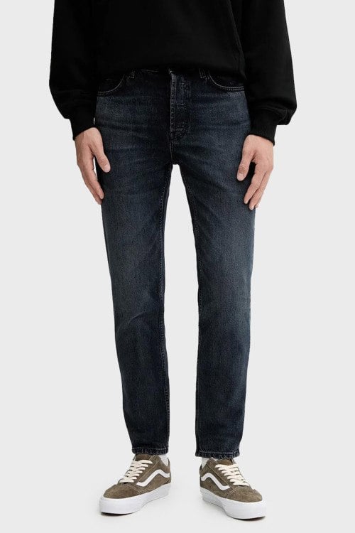 Детали: Мужские темно-синие зауженные джинсы от Hugo by Hugo Boss (Хуго бай Хуго Босс). Пяти-карманная модель, пояс с петлями для ремня, нашивка с логотипом сзади на поясе, зауженный крой, полная длина