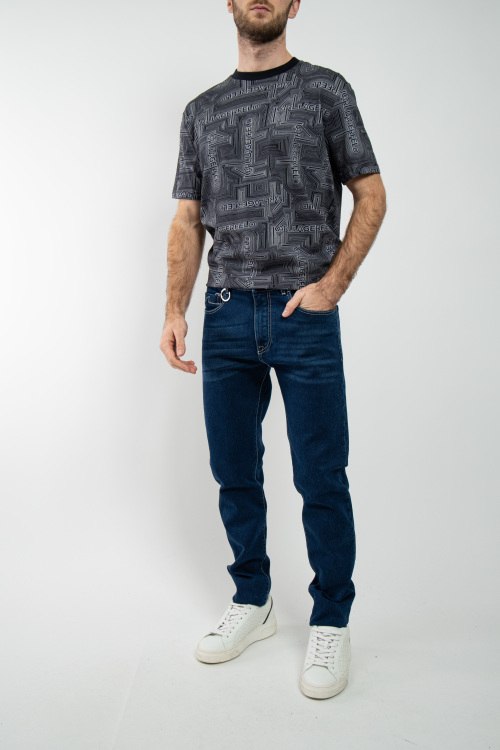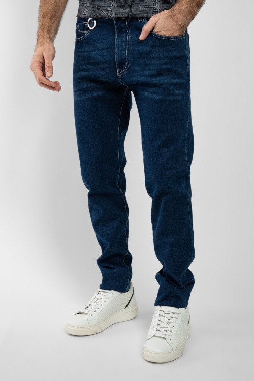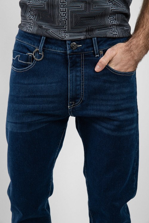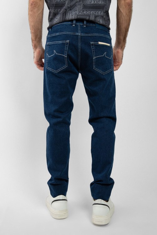 Мужские темно-синие джинсы из хлопкового микса от Paul & Shark (Пол энд Шарк). Классическая длина, средняя посадка, застежка на молнию и пуговицу, пять карманов, петли в поясе для ремня, патч-лого, брендированный брелок.