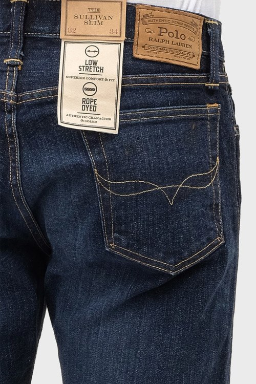 Детали: Мужские темно-синие джинсы из хлопкового микса от Ralph Lauren (Ральф Лорен). Классическая длина, застежка на молнию и пуговицу, пять карманов, петли в поясе для ремня, патч-лого