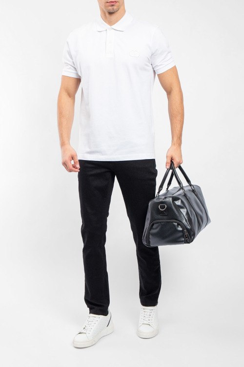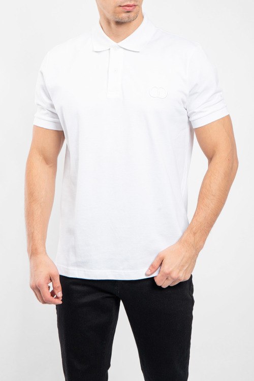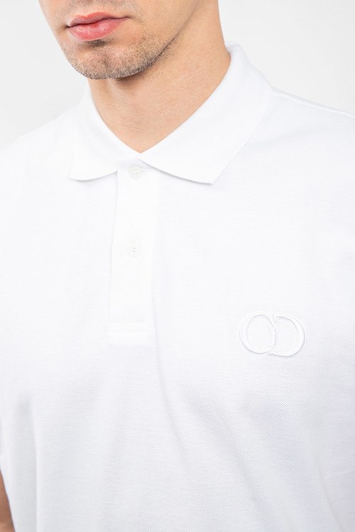 Мужская белая хлопковая футболка-поло от Christian Dior (Кристиан Диор). Вышитый логотип на груди, отложной воротник, застежка на две пуговицы, короткий рукав, классическая длина.