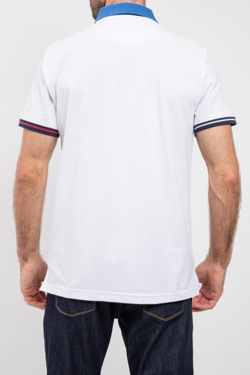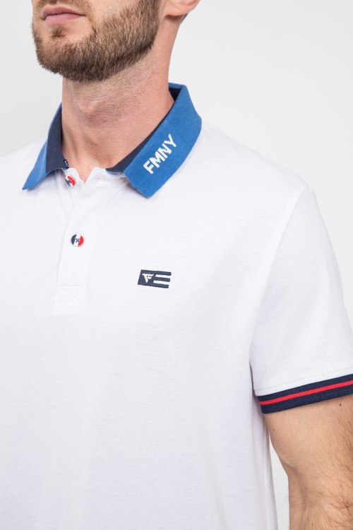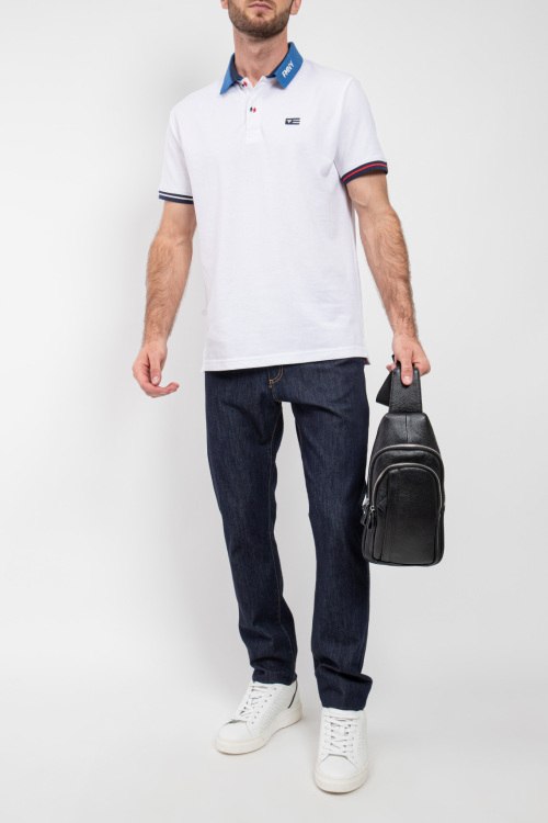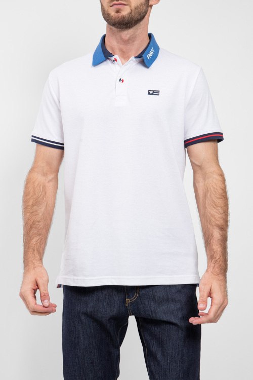 Мужская белая хлопковая футболка-поло от Fred Mello (Фред Мелло). Логотип на груди, отложной воротник, застежка на пуговицы, короткий рукав, классическая длина.
