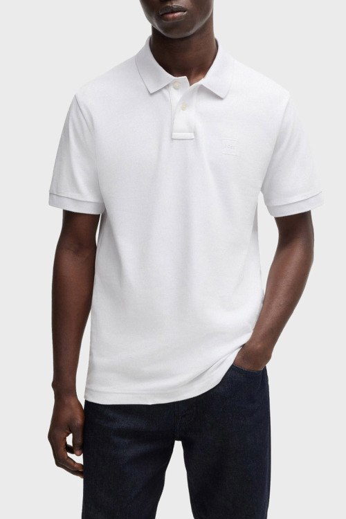 Детали: Мужская белая футболка-поло Рassertip из хлопка от Hugo Boss (Хуго Босс). Классический воротник, горловина на пуговицах, короткие рукава, логотип бренда на груди