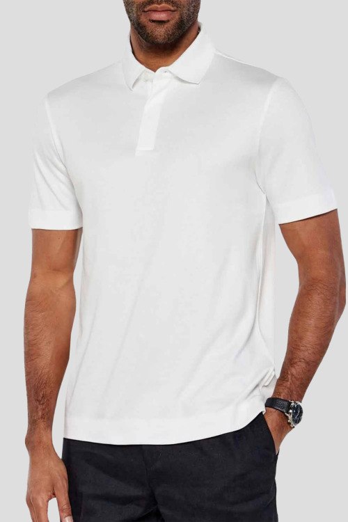 Детали: Мужская белая футболка-поло из лиоцелла и хлопка P-Press от Hugo Boss (Хуго Босс). Отложной воротник, застежка на три пуговицы, короткий рукав, классическая длина