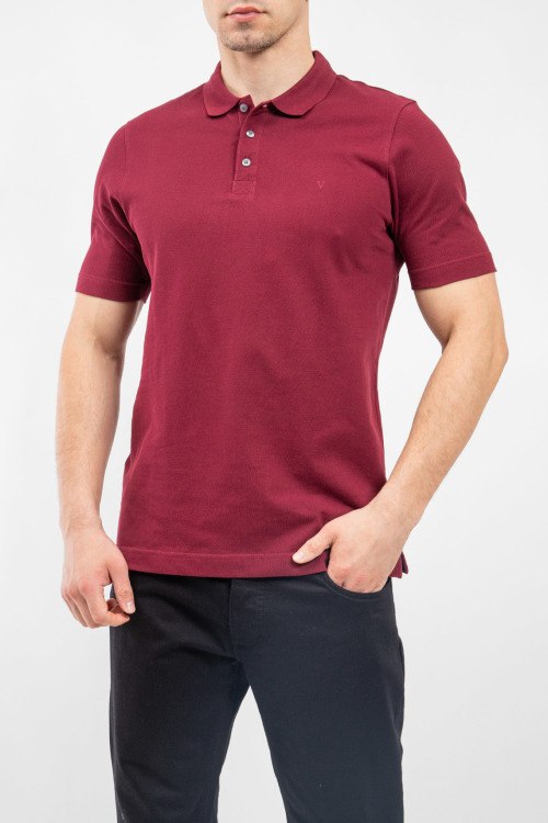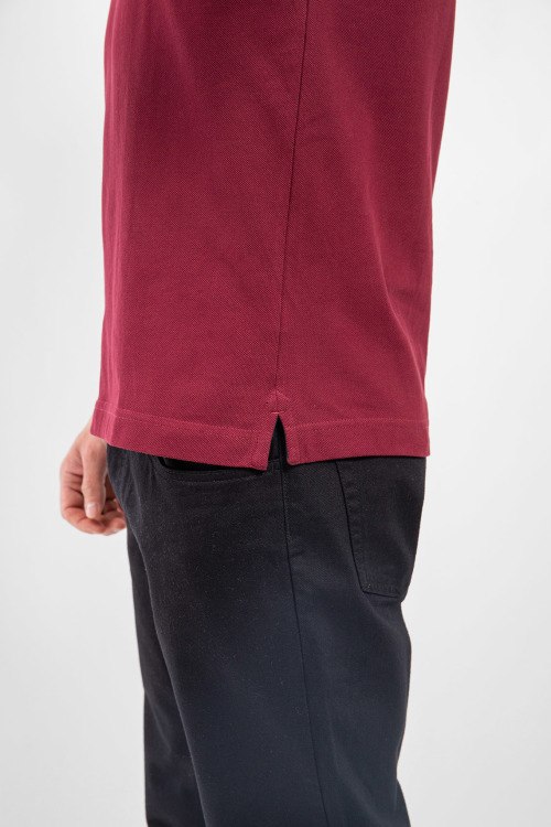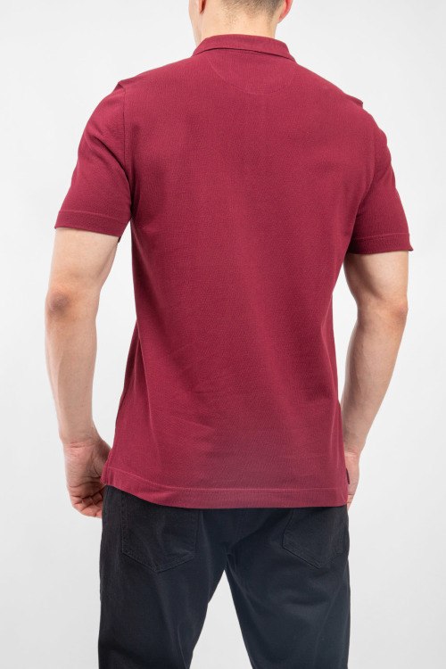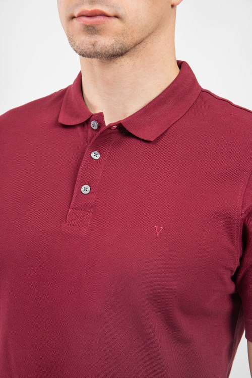 Мужская бордовая футболка-поло из хлопка от Marvelis (Марвелис). Классический воротник, горловина на пуговицах, короткие рукава, по бокам разрезы.