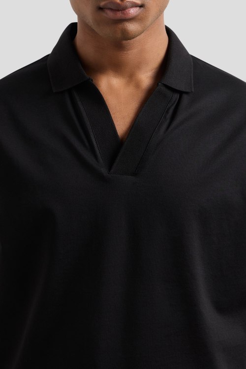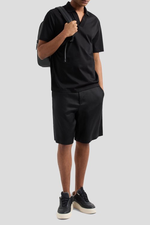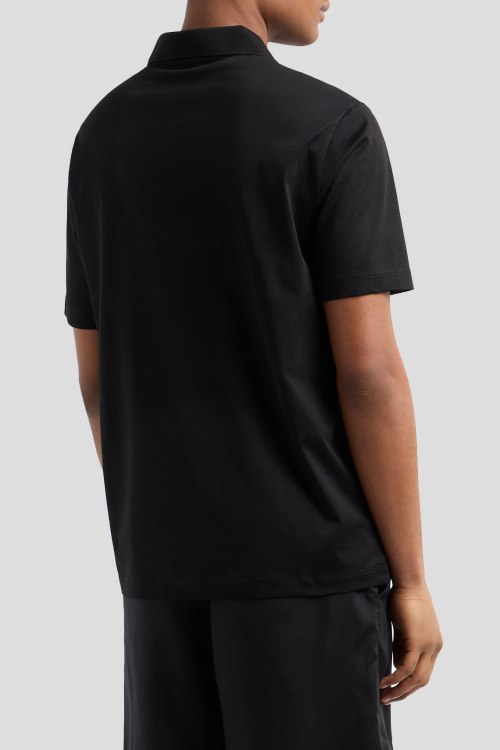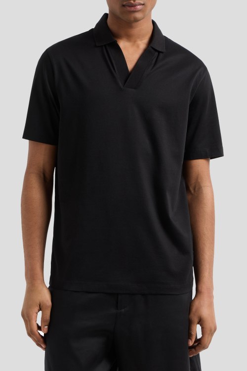 Детали: Мужская черная хлопковая футболка-поло от Armani Exchange (Армани Эксчендж). Отложной воротник, V-образный вырез, короткий рукав, классическая длина