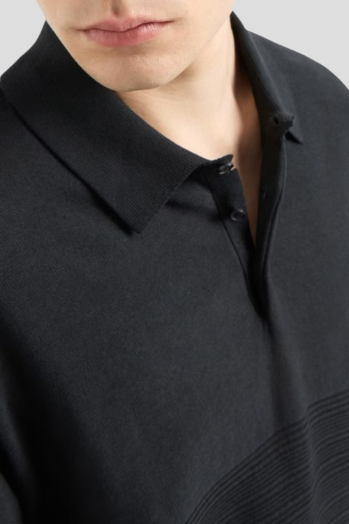 Детали: Мужская черная хлопковая футболка-поло от Armani Exchange (Армани Эксчендж). Отложной воротник, застежка на три пуговицы, короткий рукав, классическая длина