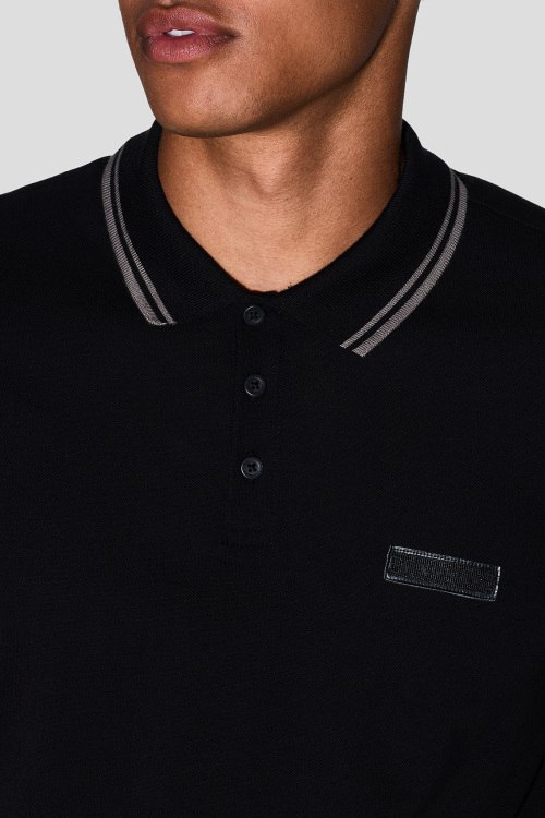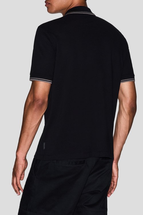Детали: Мужская черная хлопковая футболка-поло от Armani Exchange (Армани Эксчендж). Логотип на груди, отложной воротник, застежка на три пуговицы, короткий рукав, классическая длина