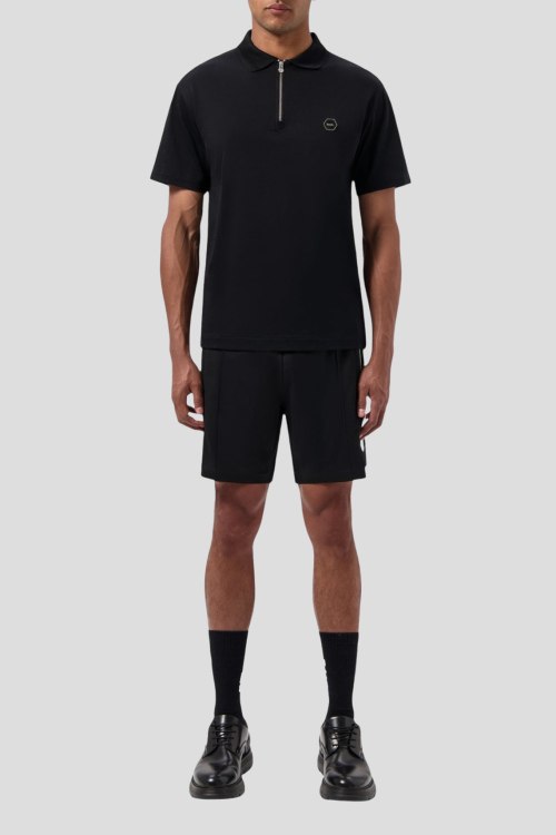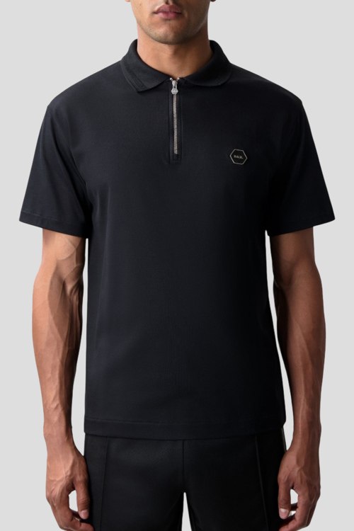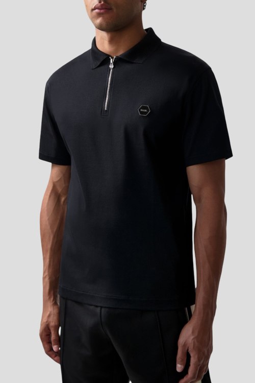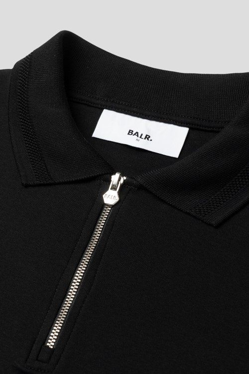 Детали: Мужская черная хлопковая футболка-поло Hex-Series от Balr. (Барл.). Логотип на груди, отложной воротник, застежка-молния, короткий рукав, классическая длина