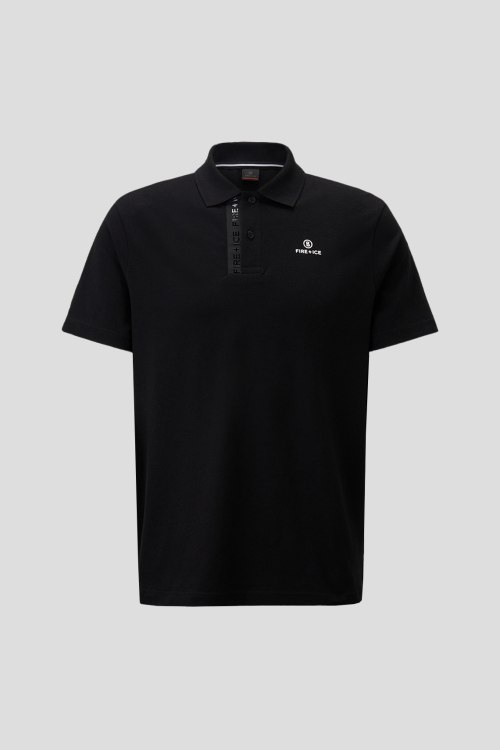 Детали: Мужская черная хлопковая футболка-поло Ramon4 от Bogner (Богнер). Логотип на груди, отложной воротник, застежка на две пуговицы, короткий рукав, классическая длина
