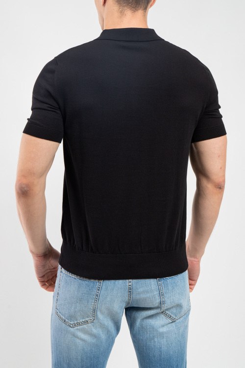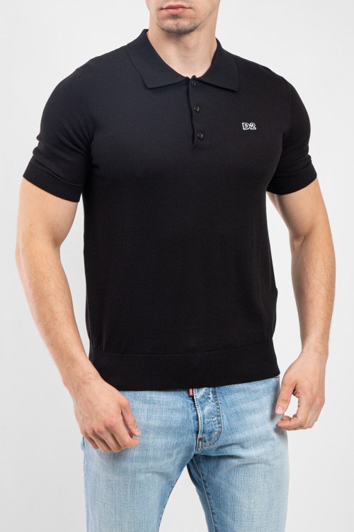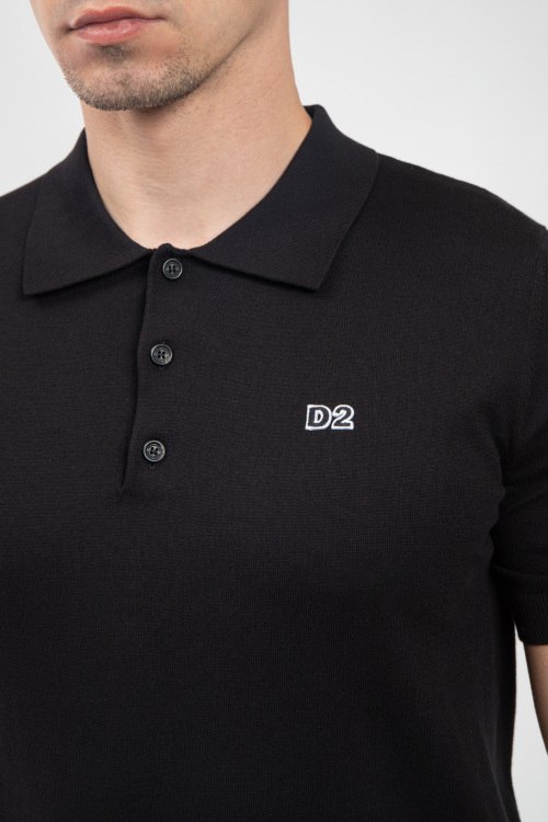 Мужская черная футболка-поло из хлопка от Dsquared2 (Дискваред). Классический воротник, горловина на пуговицах, короткие рукава, патч-лого на груди.