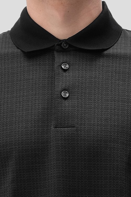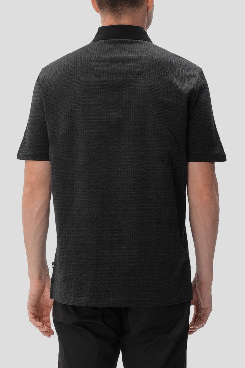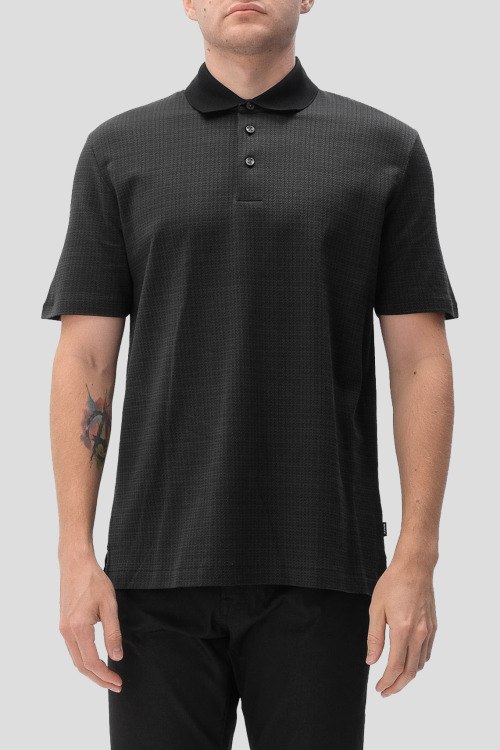 Детали: Мужская черная хлопковая футболка-поло от Hugo Boss (Хуго Босс). Отложной воротник, застежка на три пуговицы, короткий рукав, классическая длина