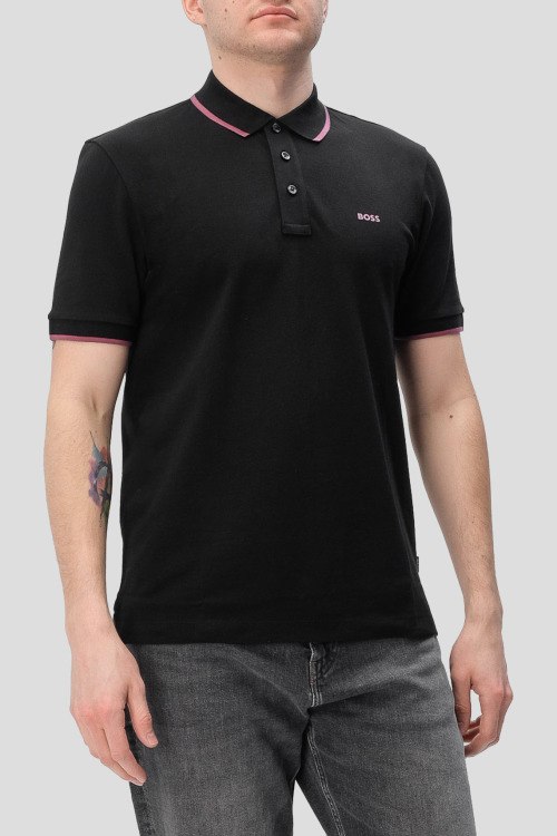 Детали: Мужская черная хлопковая футболка-поло Parlay от Hugo Boss (Хуго Босс). Логотип на груди, отложной воротник, застежка на три пуговицы, короткий рукав, классическая длина