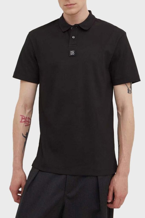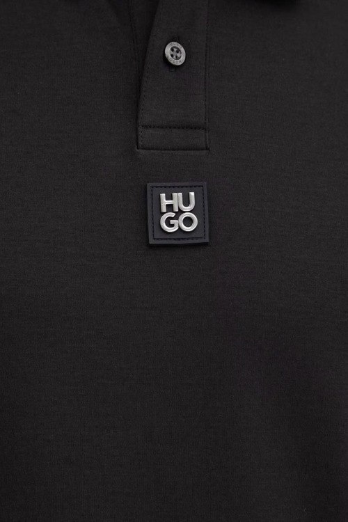 Детали: Мужская черная хлопковая футболка-поло Deabono_D от Hugo by Hugo Boss (Хуго бай Хуго Босс). Логотип на груди, отложной воротник, застежка на две пуговицы, короткий рукав, классическая длина
