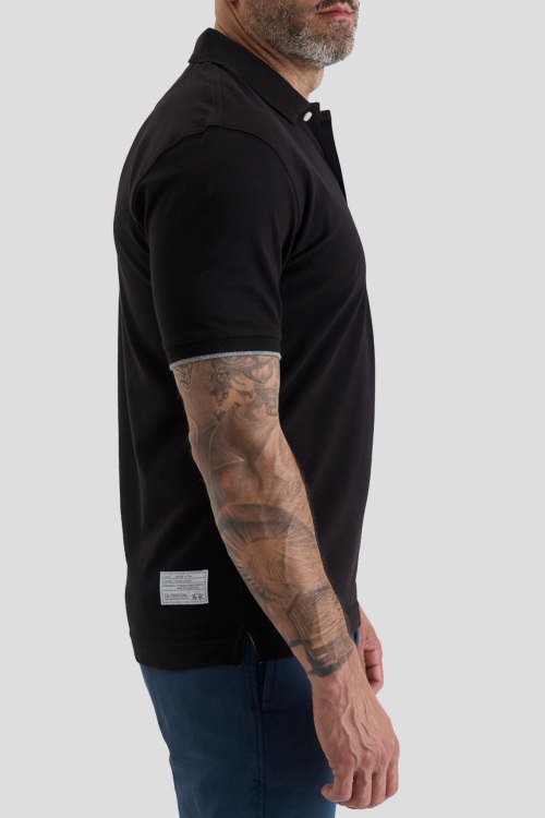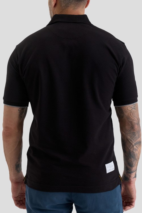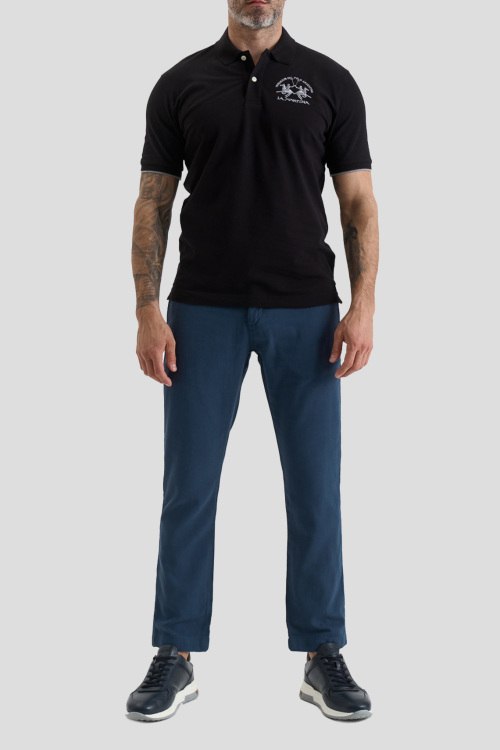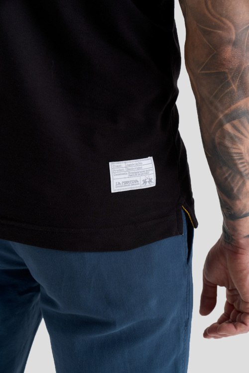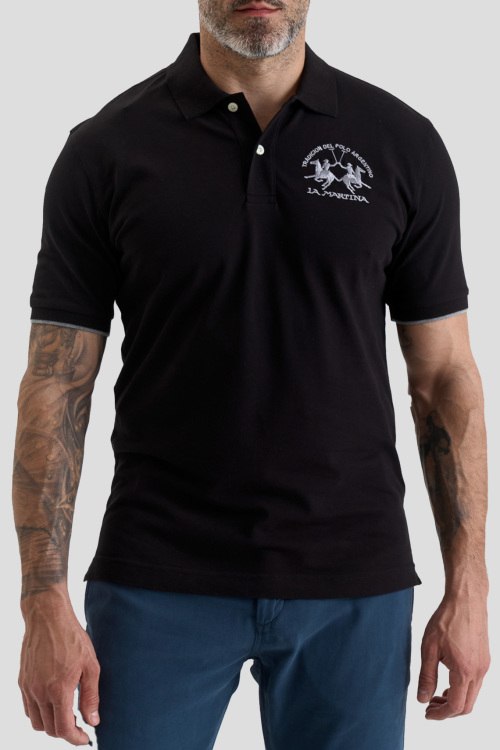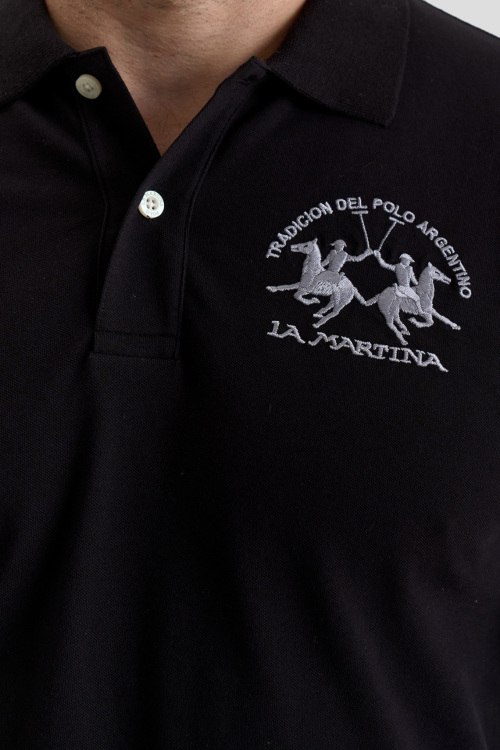 Детали: Мужская черная хлопковая футболка-поло от La Martina (Ла Мартина). Логотип на груди, отложной воротник, застежка на две пуговицы, короткий рукав, классическая длина