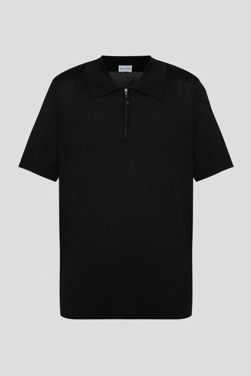 Детали: Мужская черная футболка-поло из шелка и хлопка от Pal Zileri (Пал Зилери). Классический воротник, горловина на молнии, короткие рукава. Замеры: длина рукава: короткий, для размера 50 - 26 см, обхват груди: для размера 50 - 110 см, обхват талии: для размера 50 - 106 см, длина изделия по среднему шву спинки от горловины: для размера 50 - 67 см