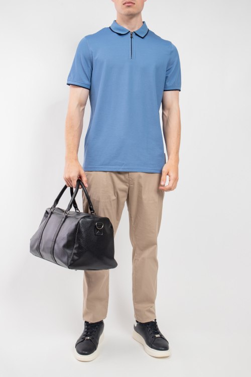 Детали: Мужская голубая хлопковая футболка-поло Misty от Bogner (Богнер). Отложной воротник, застежка-молния, короткий рукав, классическая длина