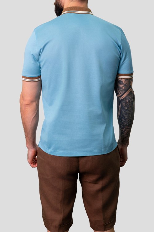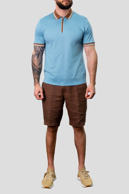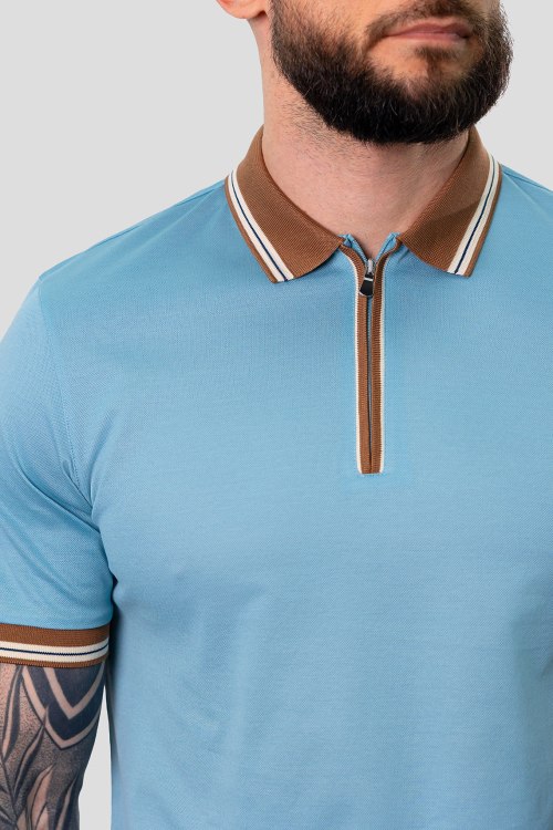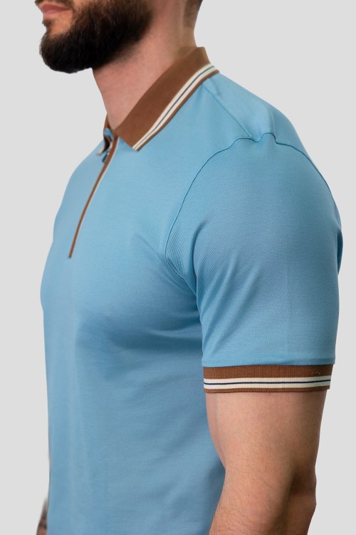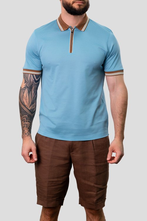Детали: Мужская голубая хлопковая футболка-поло от Gran Sasso (Гран Сассо). Отложной воротник, застежка-молния, короткий рукав, классическая длина