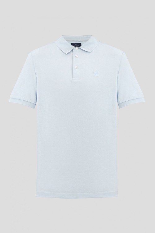 Детали: Мужская бледно-голубая хлопковая футболка-поло от Hackett (Хаккетт). Логотип на груди, отложной воротник, застежка на три пуговицы, короткий рукав, классическая длина. Длина рукава: короткий, для размера М - 22 см, обхват груди: для размера М - 102 см, обхват талии: для размера М - 100 см, длина изделия по среднему шву спинки от горловины: для размера М - 69 см