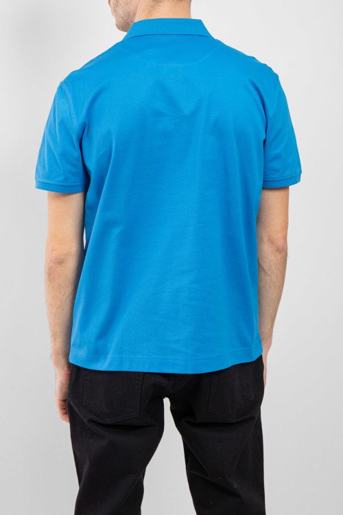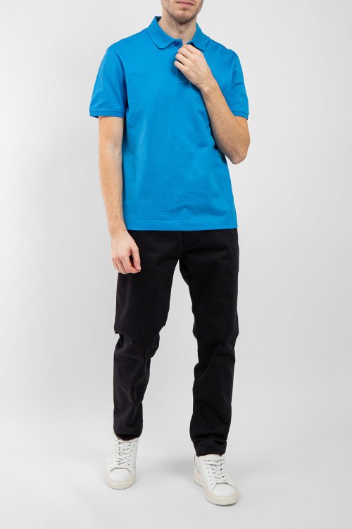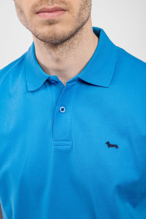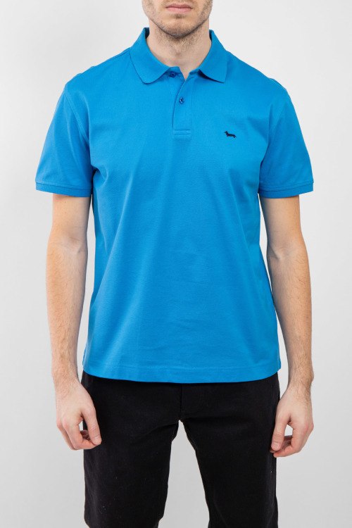 Мужская голубая хлопковая футболка-поло от Harmont & Blaine (Хармонт энд Блейн). Логотип на груди, отложной воротник, застежка на две пуговицы, короткий рукав, классическая длина.