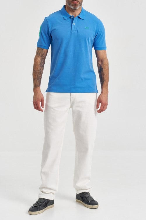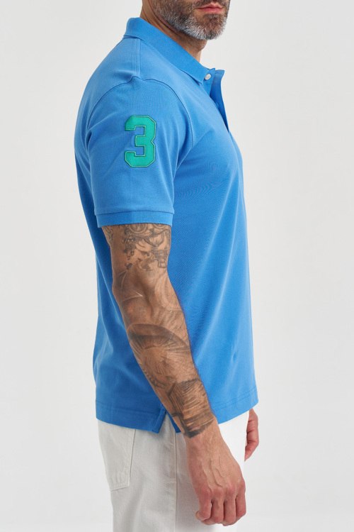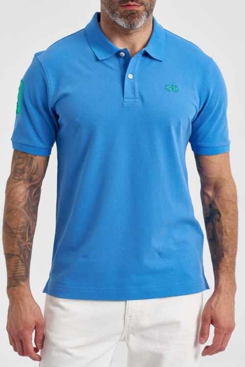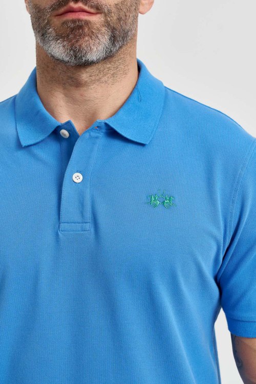 Детали: Мужская голубая хлопковая футболка-поло от La Martina (Ла Мартина). Логотип на груди, отложной воротник, застежка на две пуговицы, короткий рукав с нашивкой, классическая длина. Параметры модели: 103 см - 87 см - 99 см. Рост - 182 см. Размер на фото - L