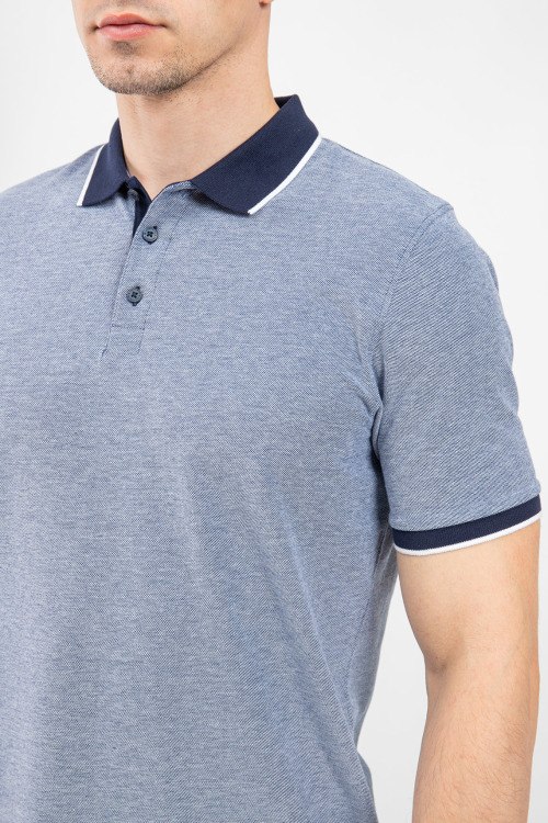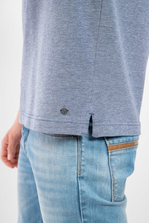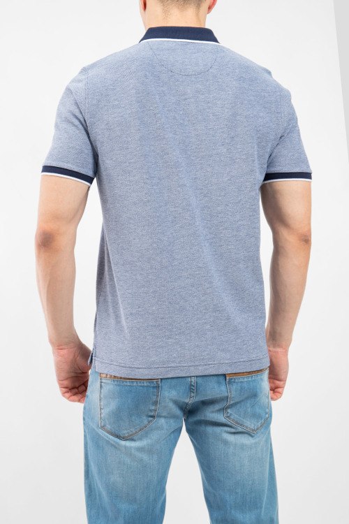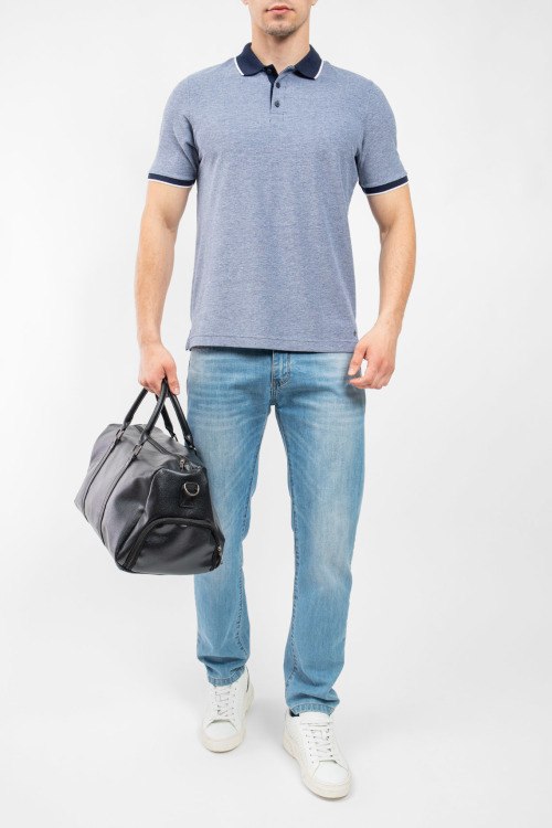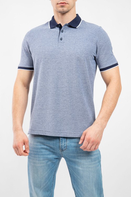 Мужская голубая футболка-поло из хлопка от Marvelis (Марвелис). Классический воротник, горловина на пуговицах, короткие рукава, по бокам разрезы.