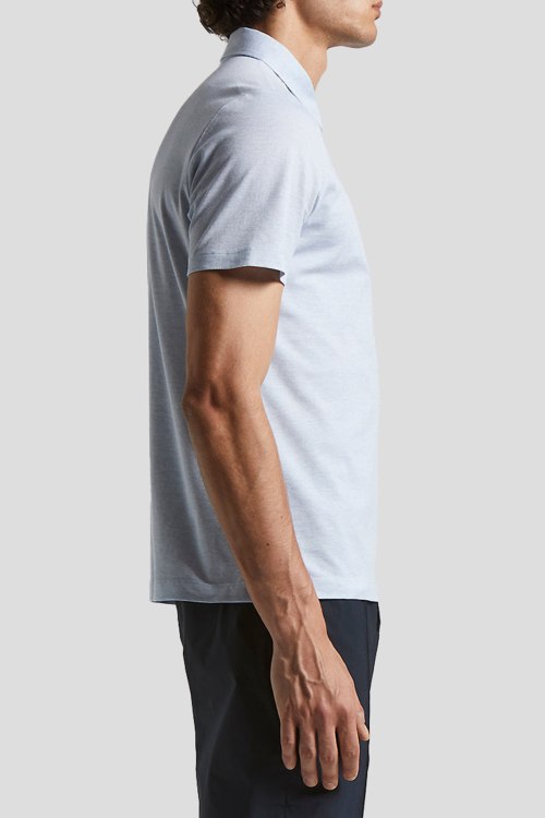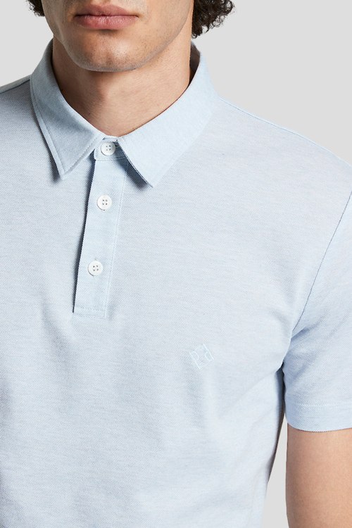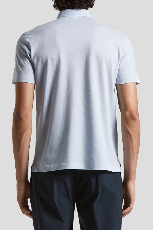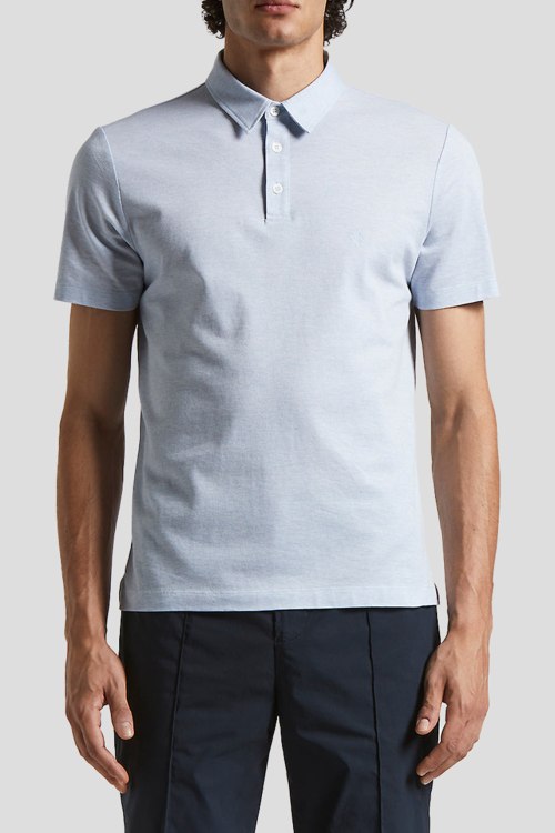Детали: Мужская голубая футболка-поло из хлопка от Peserico (Пезерико). Классический воротник, горловина на пуговицы, короткие рукава по бокам разрезы