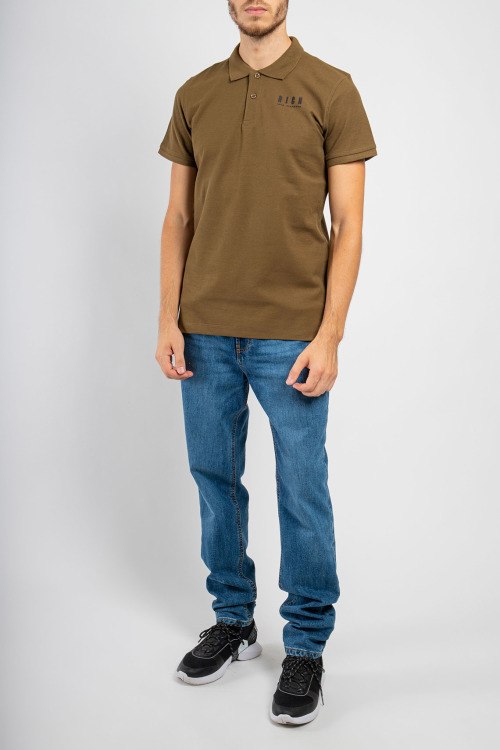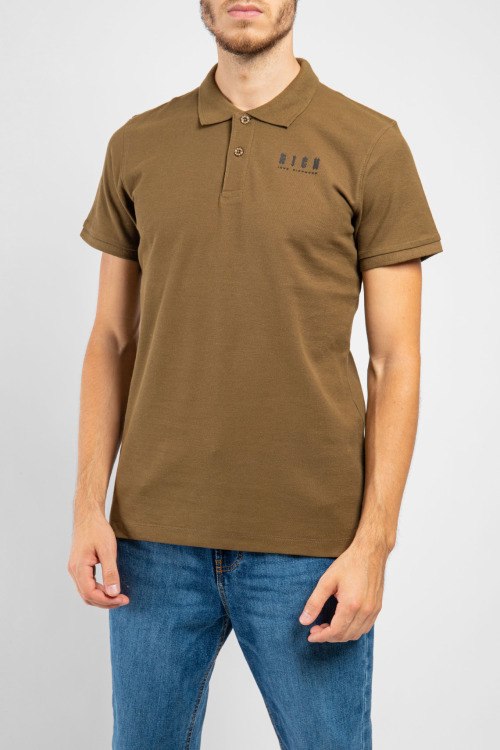 Детали: Мужская коричневая футболка-поло из хлопка от John Richmond (Джон Ричмонд). Классическая длина, короткие рукава, отложной воротник, две пуговицы, дизайн с принтом