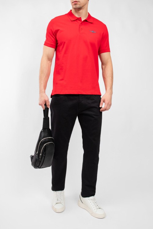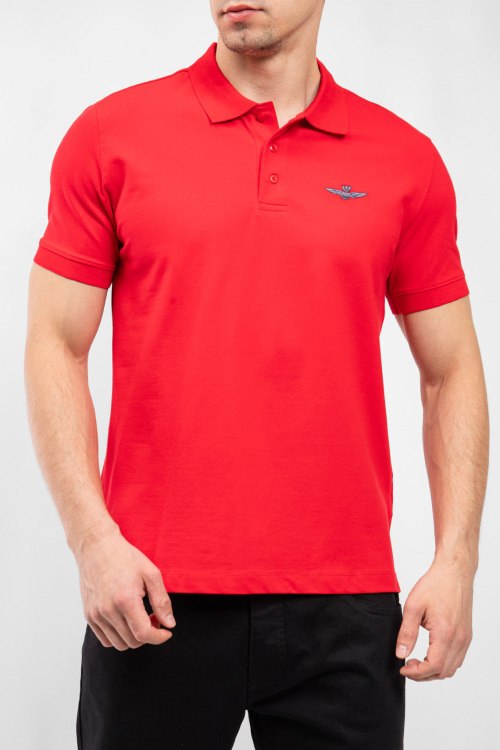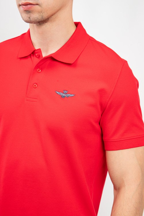 Мужская красная хлопковая футболка-поло от Aeronautica Militare (Аэронавтика Милитари). Вышитый логотип на груди, отложной воротник, застежка на три пуговицы, короткий рукав, классическая длина.