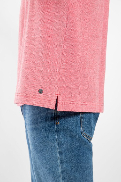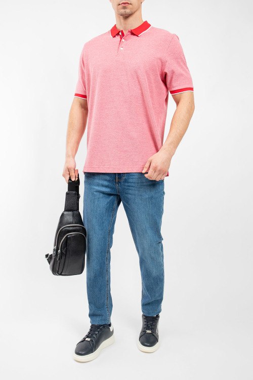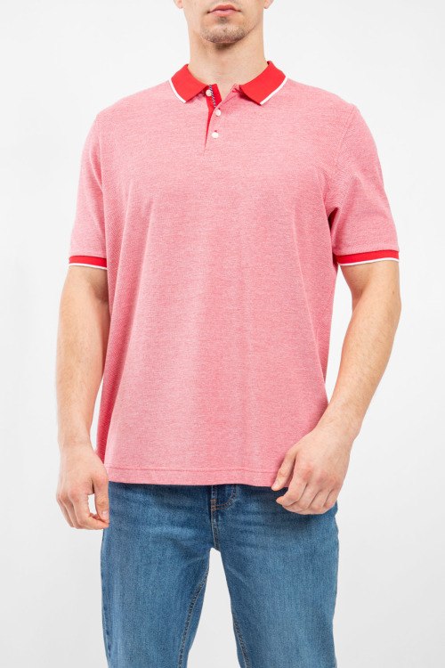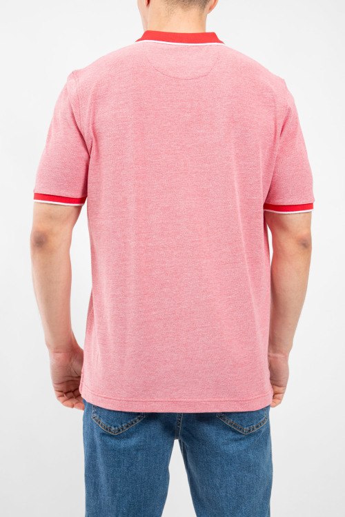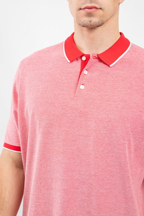 Мужская красная футболка-поло из хлопка от Marvelis (Марвелис). Классический воротник, горловина на пуговицах, короткие рукава, по бокам разрезы.