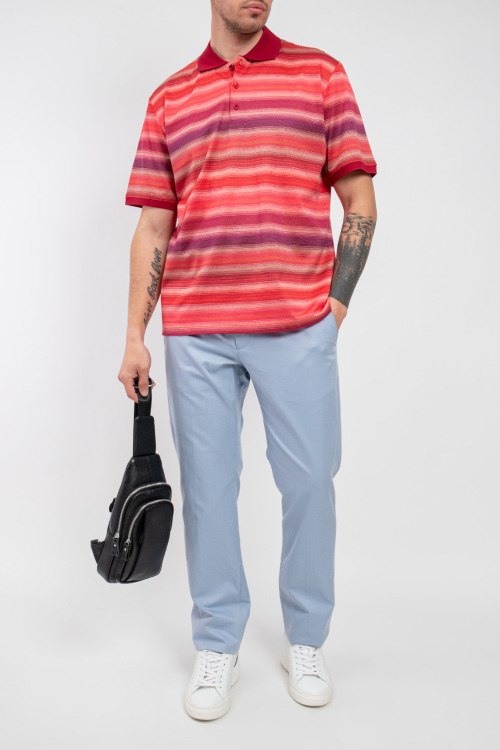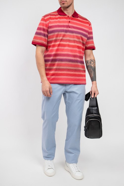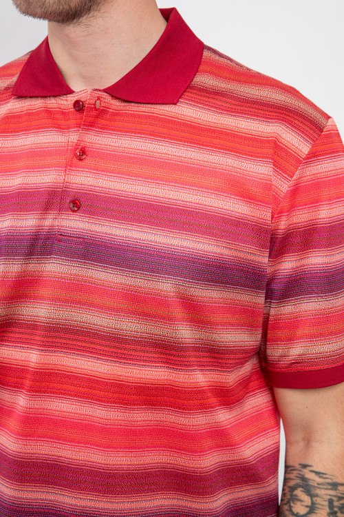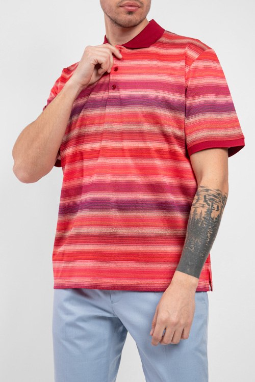 Мужская красная футболка-поло из хлопка от White House (Вайт Хаус). Классическая длина, горловина застегивается на пуговицы, короткие рукава, дизайн в полоску.