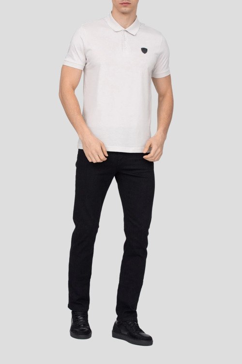 Детали: Мужская футболка-поло молочного оттенка из хлопка от Armani (Армани). Классическая длина, короткие рукава, прямой фасон, отложной воротник, застежка на кнопки, нашивка логотипа на груди