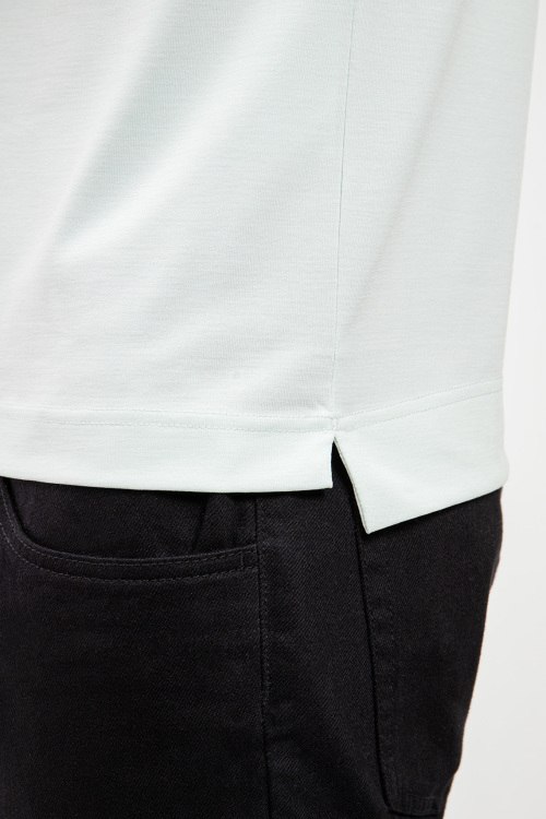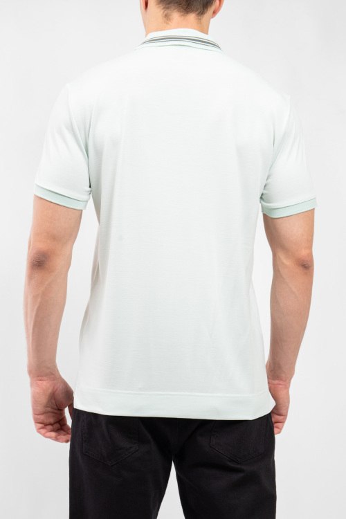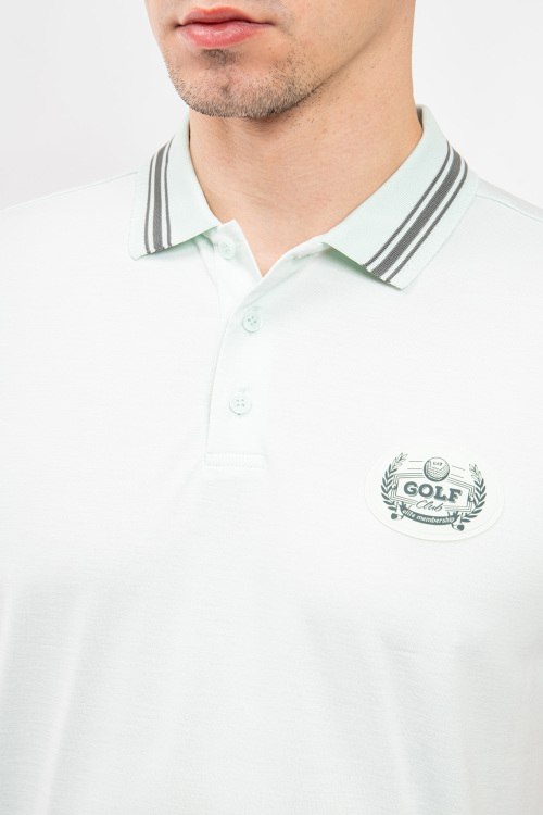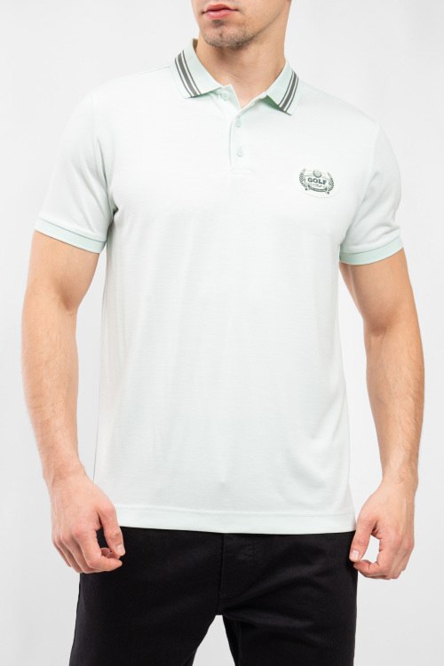 Мужская мятная футболка-поло из лиоцелла от EA7 Emporio Armani (ЕА7 Эмпорио Армани). Принт на груди, отложной воротник, застежка на три пуговицы, короткий рукав, классическая длина.