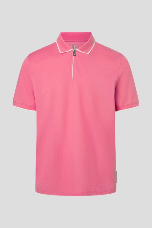 Детали: Мужская розовая хлопковая футболка-поло Timo от Bogner (Богнер). Отложной воротник, застежка-молния, короткий рукав, классическая длина