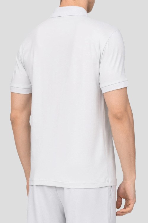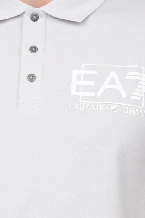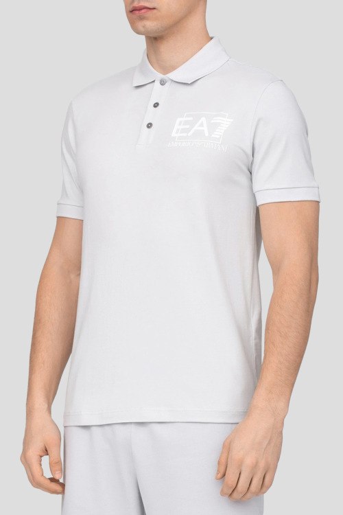 Детали: Мужская светло-серая футболка-поло из хлопка от Armani (Армани). Прямой фасон, классическая длина, короткие рукава, отложной воротник, застежка на пуговицы, принт логотипа на груди