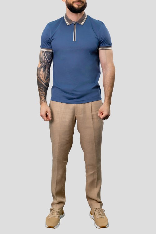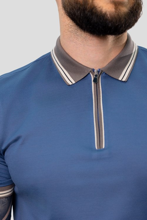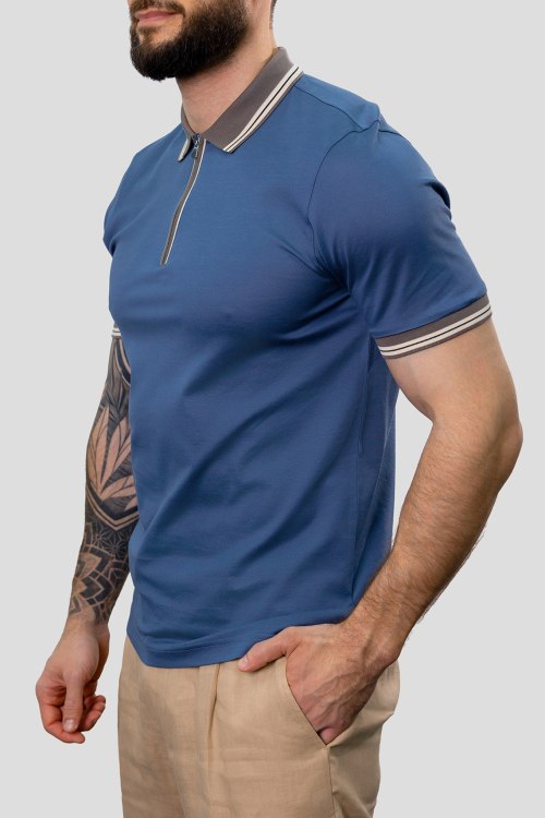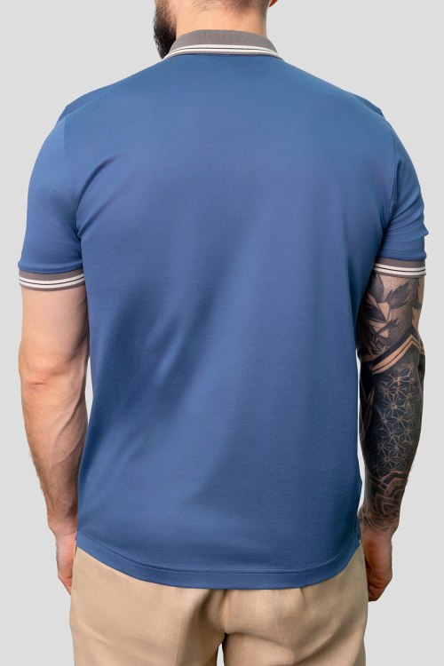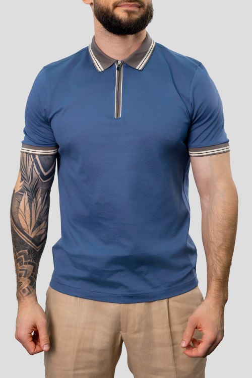Детали: Мужская синяя хлопковая футболка-поло от Gran Sasso (Гран Сассо). Отложной воротник, застежка-молния, короткий рукав, классическая длина