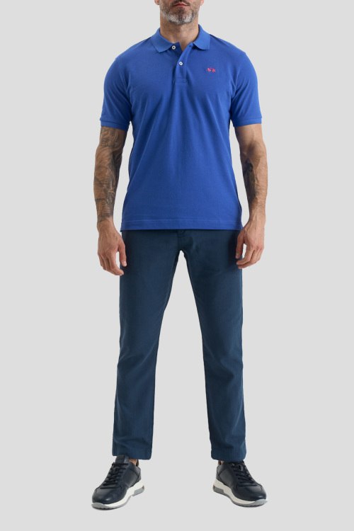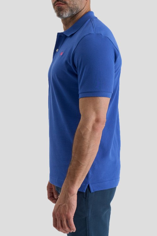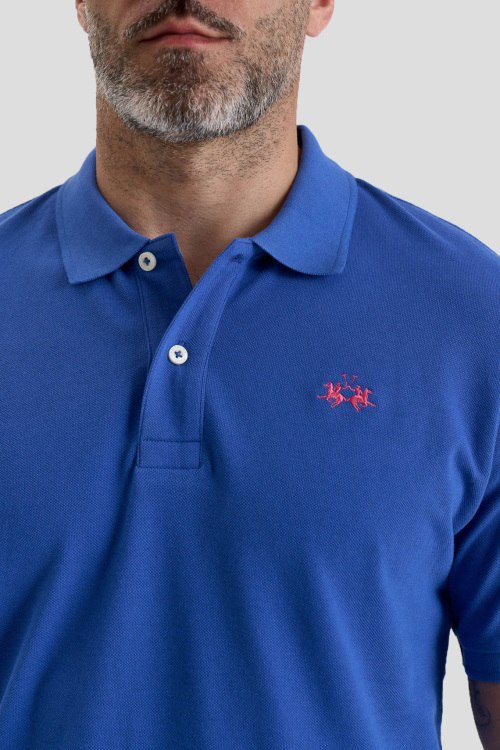 Детали: Мужская синяя хлопковая футболка-поло от La Martina (Ла Мартина). Логотип на груди, отложной воротник, застежка на две пуговицы, короткий рукав, классическая длина