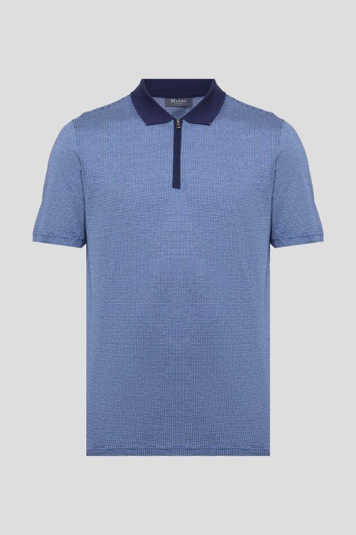 Детали: Мужская синяя хлопковая футболка-поло от Maerz (Маерз). Отложной воротник, застежка-молния, короткий рукав, классическая длина. Длина рукава: короткий, для размера 50 - 26 см, обхват груди: для размера 50 - 110 см, обхват талии: для размера 50 - 108 см, длина изделия по среднему шву спинки от горловины: для размера 50 - 72 см