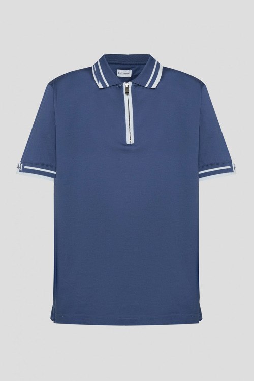 Детали: Мужская синяя хлопковая футболка-поло от Pal Zileri (Пал Зилери). Отложной воротник, застежка-молния, короткий рукав, классическая длина. Длина рукава: короткий, для размера 50 - 24 см, обхват груди: для размера 50 - 112 см, обхват талии: для размера 50 - 106 см, длина изделия по среднему шву спинки от горловины: для размера 50 - 69 см