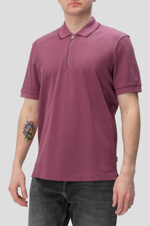 Детали: Мужская лиловая хлопковая футболка-поло H-Paras от Hugo Boss (Хуго Босс). Отложной воротник, застежка-молния, короткий рукав, классическая длина