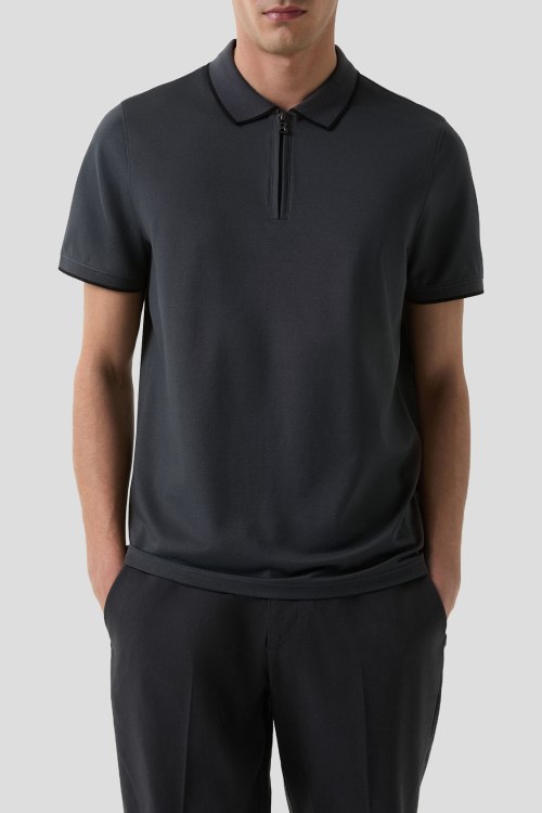 Детали: Мужская темно-серая футболка-поло Timo из хлопкового микса Timo от Bogner (Богнер). Классический воротник, горловина на молнии, короткие рукава