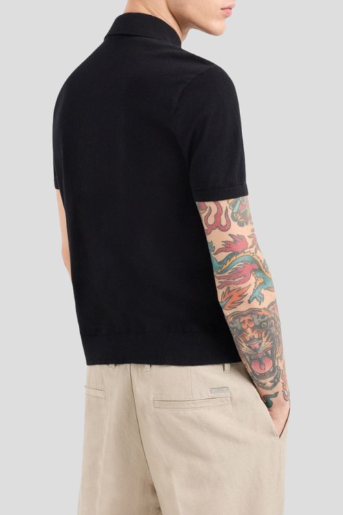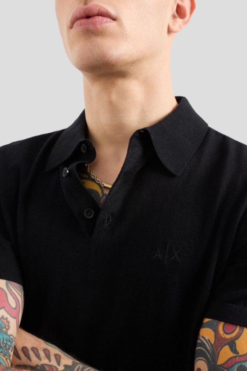 Детали: Мужская темно-синяя хлопковая футболка-поло от Armani Exchange (Армани Эксчендж). Вышитый логотип на груди, отложной воротник, застежка на пуговицы, короткий рукав, классическая длина