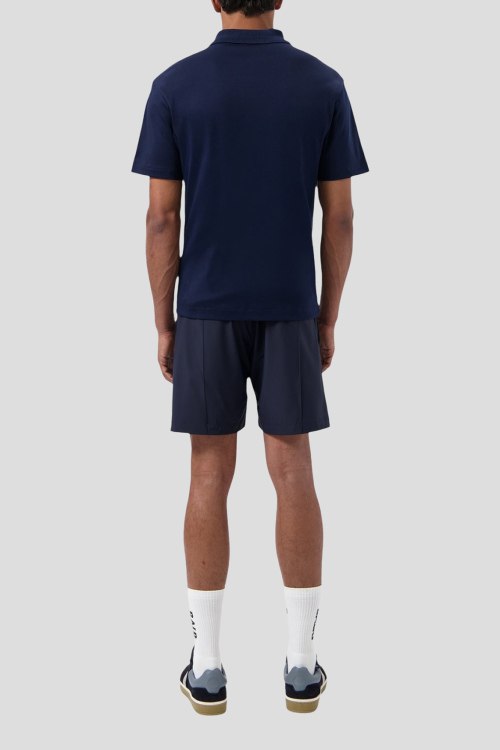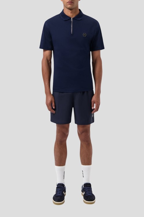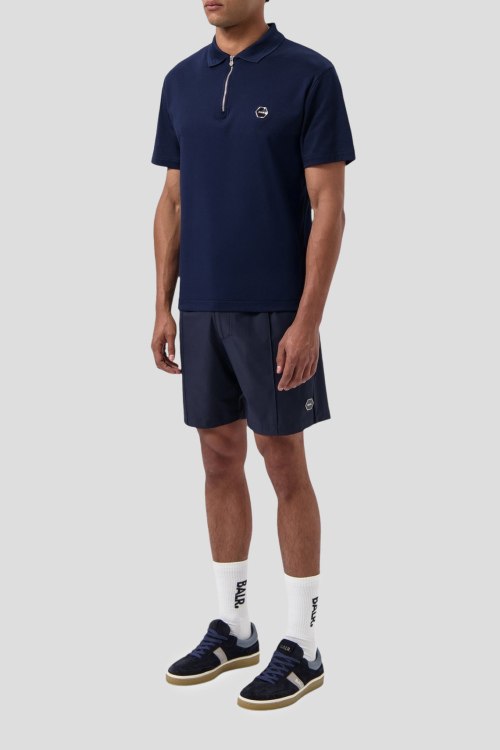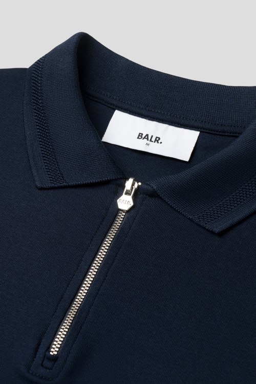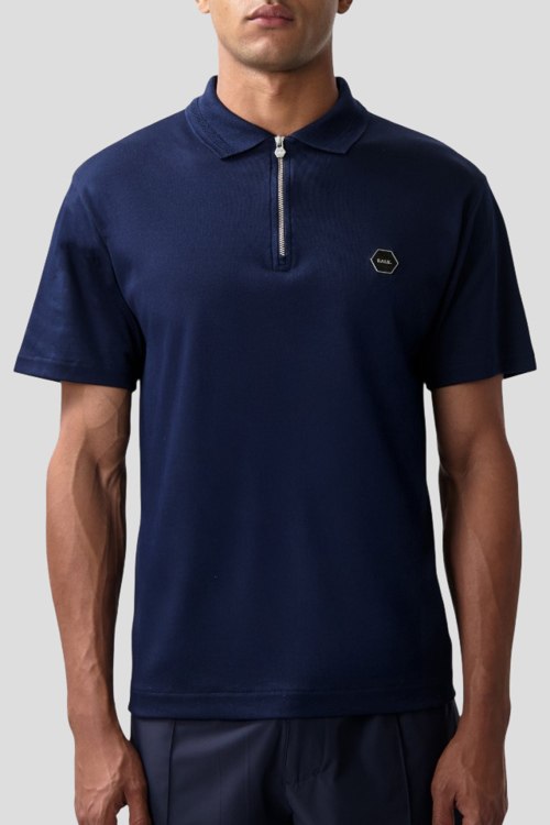 Детали: Мужская темно-синяя хлопковая футболка-поло Hex-Series от Balr. (Барл.). Логотип на груди, отложной воротник, застежка-молния, короткий рукав, классическая длина