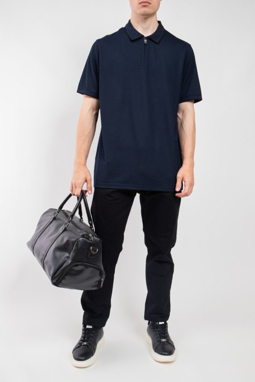Детали: Мужская темно-синяя хлопковая футболка-поло Timo от Bogner (Богнер). Отложной воротник, застежка-молния, короткий рукав, классическая длина