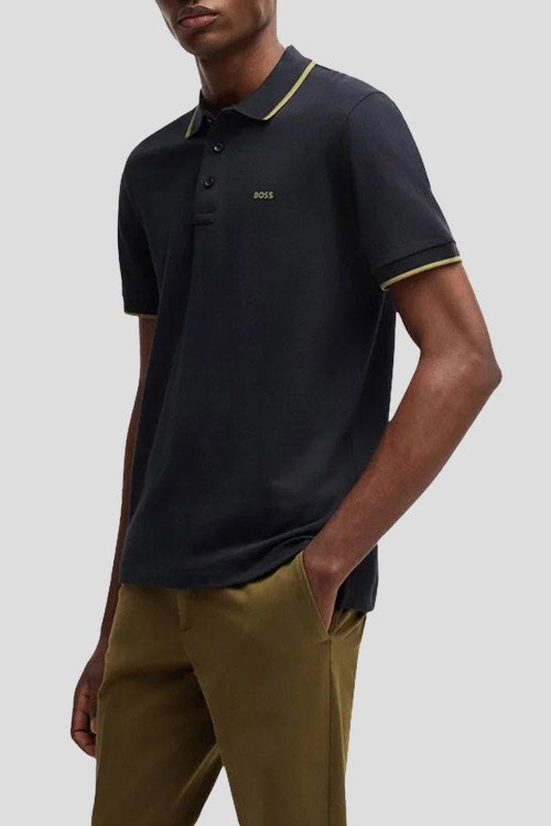 Детали: Мужская темно-синяя хлопковая футболка-поло Parlay от Hugo Boss (Хуго Босс). Логотип на груди, отложной воротник, застежка на пуговицы, короткий рукав, классическая длина