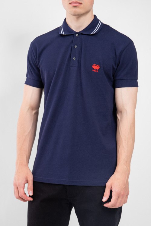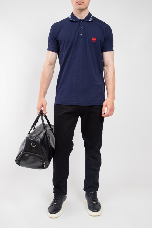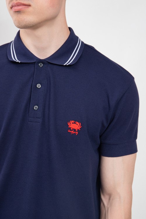 Детали: Мужская темно-синяя хлопковая футболка-поло от Ice Play (Айс Плей). Вышитый логотип на груди, отложной воротник, застежка на три пуговицы, короткий рукав, классическая длина